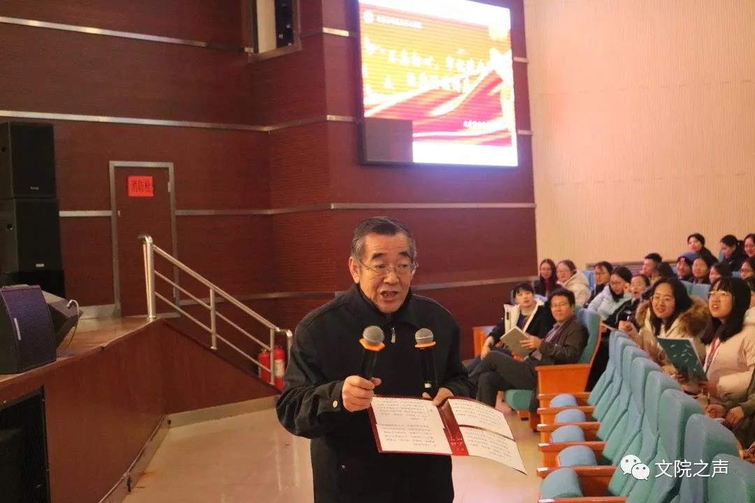 2019年11月28日下午14时,beat365英国官方网站“不忘初心,牢记使命”主题教育系列活动之传“诵”经典在学院楼报告厅举行。本场经典诵读活动,特邀beat365退休教师杨燕民教授主讲,beat365英国官方网站副院长石海光副教授主持。