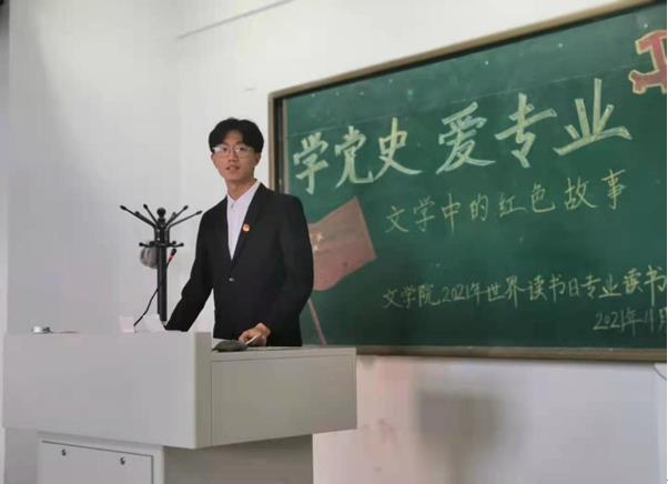 随后,2020级汉语言文学免费师范生一班的杨滢嘉同学与大家共同分享了《红星照耀中国》的故事,带领大家一起回到了1936的陕北,共同见证红星照耀陕北、照耀中国,照耀世界的奇迹。2020级汉语言文学免费师范生二班李孟喆同学,带领师生走进了革命之火燃起的时代,讲述了那个时的红色经典故事——《创业史》。赵雨田、刁雯钰、张祎冉、余懋诚、王飞等同学先后讲述了他们的阅读、学习《长征》《红岩》《林海雪原》《地球的红飘带》《第二次握手》deng经典著作的心得和体会。大家表示,我们如今的和平生活是无数革命战士用鲜血换来的,我们更应该珍惜现在已经拥有的幸福生活,牢记革命历史,铭记革命烈士。