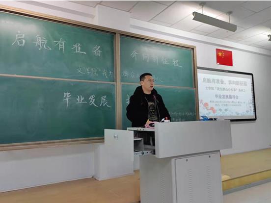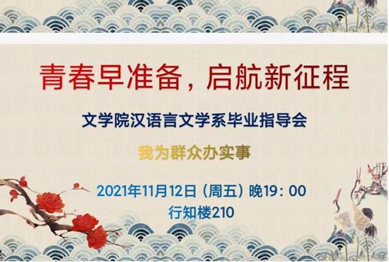 2021年11月13日,beat365在盛乐校区行知楼210召开了主题为“启航有准备,奔向新征程”的毕业生发展指导会。本次会议由汉文系、汉语系、教务办共同举办,教工一支部书记刘伟博士、汉语言文学系副主任胡素莲博士、教务办公室吴永盛老师出席了会议,汉文系、汉语系、秘书系全体毕业生共300余人参加了会议。
