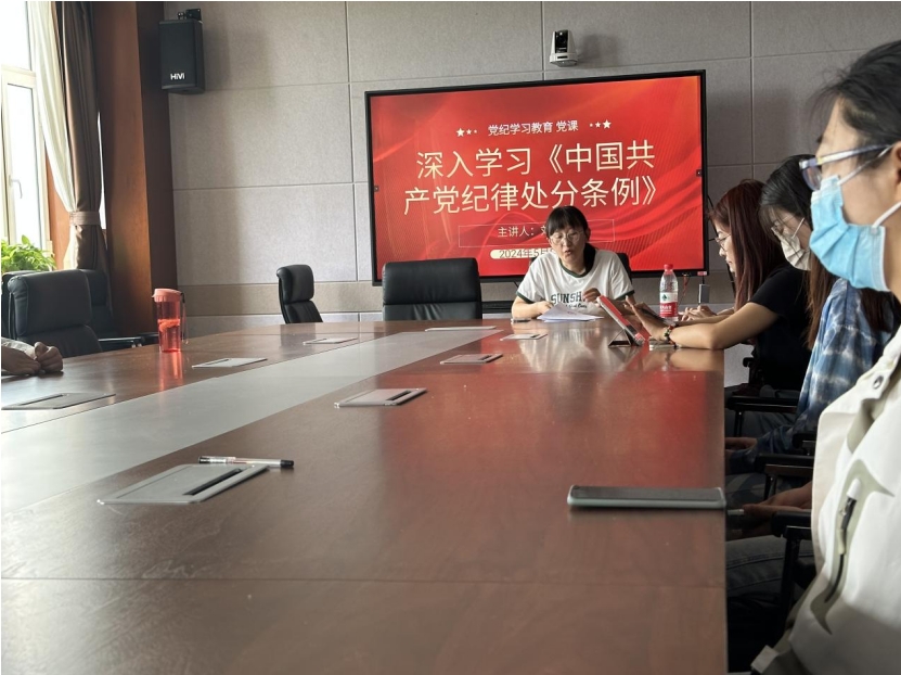 5月13日下午,beat365英国官方网站研究生党支部在学院楼A307会议室召开党纪学习教育专题读书班,全体研究生党员围绕《中国共产党纪律处分条例》进行交流研讨。