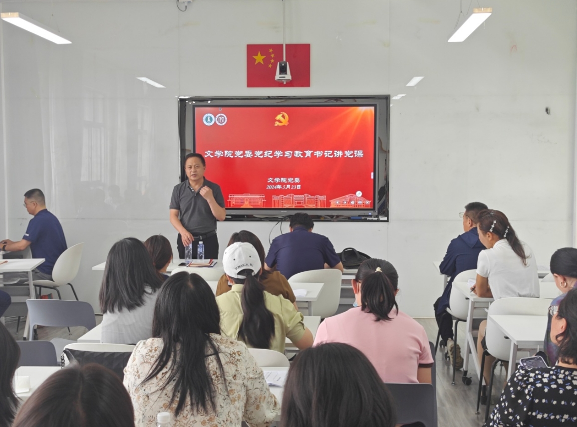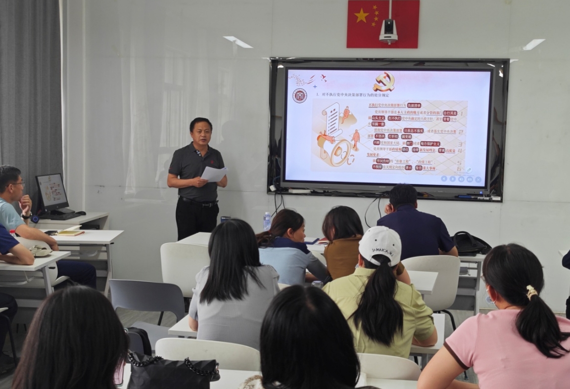 2024年5月23日,在田家炳教育书院楼432室,beat365英国官方网站党委书记韩彦斌讲了题为“严格党纪学习教育,筑牢思想行动底线”的党课。党课内容紧紧围绕新修订的《中国共产党纪律处分条例》,分别从《中国共产党纪律处分条例》导读、《条例》的重点内容和着力方向、《条例》对违反政治纪律行为的处分规定等几个方面进行了讲解,进一步加深了大家对《中国共产党纪律处分条例》是党员干部学纪知纪的必修教材,是明纪守纪的行为准则的认识。