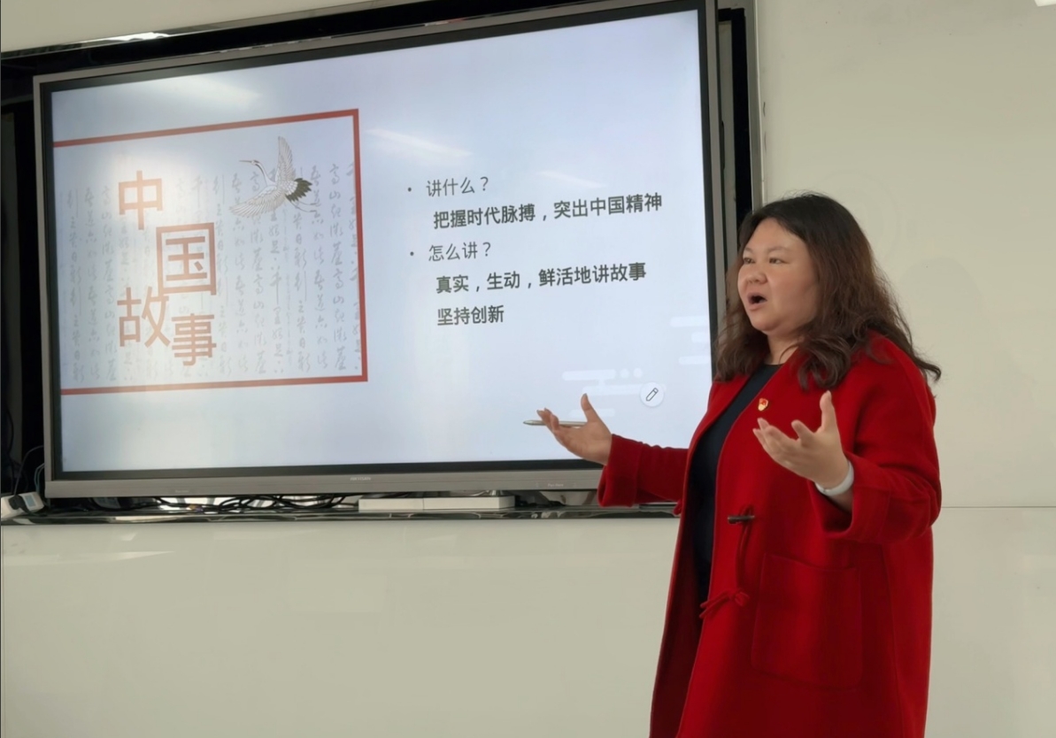 11月14日中午,beat365英国官方网站党委委员孙静以《学习贯彻习近平新时代中国特色社会主义思想——讲好中国故事,传播好中国声音》为题,为研究生党支部党员讲专题党课。