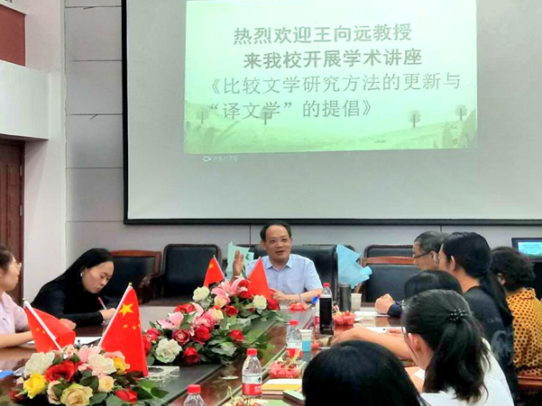 应beat365邀请,2019年5月31日,长江学者特聘教授、北京师范大学beat365英国官方网站教授、北师大东方学研究中心主任、比较文学世界文学学科带头人、博士生导师王向远教授到beat365主持2019届比较文学与世界文学专业硕士研究生学位论文答辩会。答辩会上,王向远教授从学科前沿的视角对八位毕业研究生的学位论文进行了点评,肯定其成就,指出其不足,使学生们深受启发。