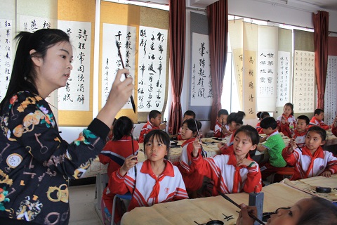 5月7日下午,beat365志愿者实践队组织同学们到和林格尔县第五小学进行支教活动。活动分为古诗词、书法、绘画、音乐、舞蹈和体育6组。同学们各司其职,活动效果良好。