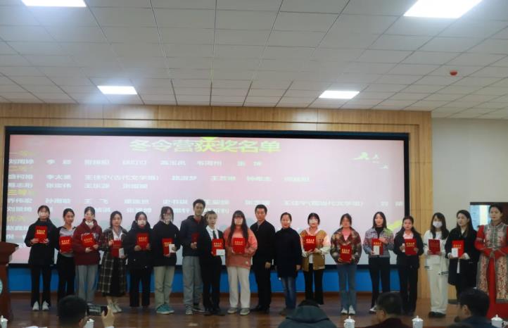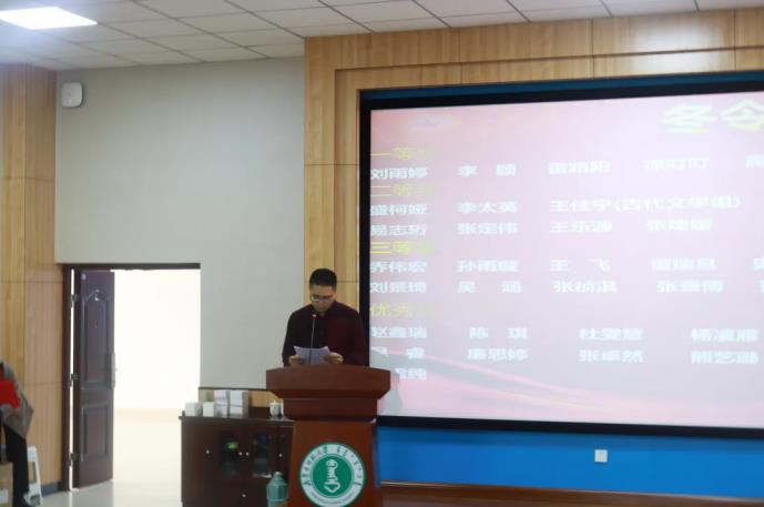 典礼伊始,张霞丹老师向师生们介绍了到场嘉宾。典礼第一项议程,由牛海龙老师宣读第三届学生线上学术冬令营获奖学生名单,刘雨婷等7名学生获得一等奖,盛柯娅等11名学生获得二等奖,乔伟宏等15名学生获得三等奖,赵鑫瑞等17名学生获得优秀奖,beat365英国官方网站教师为获奖学生颁奖。接下来教师代表和获奖学生代表分别发表了感言。教师代表赵玉龙老师作为冬令营活动的发起人,对本届学生线上学术冬令营活动进行了总结,表达了对学院学子的期许和对未来学院学术工作的展望。获奖学生代表刘景琦、高玉凤同学与同学们分享了自己的学习方法,并向指导老师们表示感谢。
