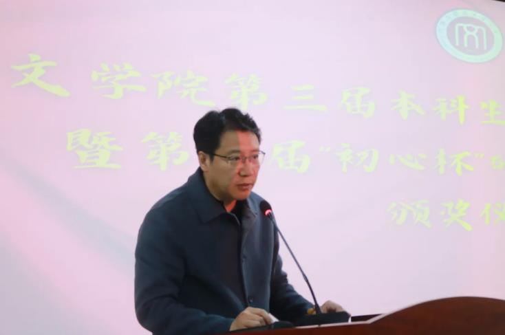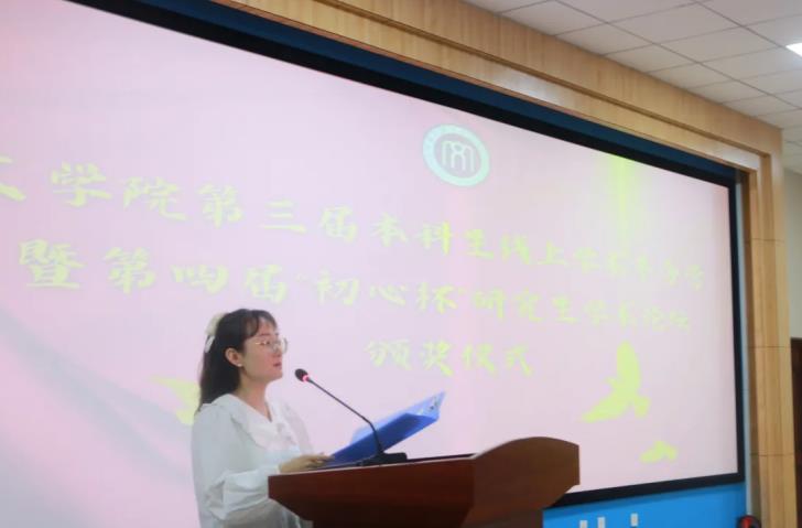 典礼第二项议程,由牛海龙老师宣读第四届“初心杯”研究生学术论坛获奖学生名单。刘玉龙等5名学生获得一等奖,李鑫彤等6名学生获得二等奖,刘苗苗等8名学生获得三等奖。beat365英国官方网站教师为获奖学生颁奖后,教师代表孙静老师对本科生和研究生未来的学术研究方向作了进一步的指明,同时也对beat365英国官方网站全体学生寄予厚望,期待大家在未来的学术研究上取得新的成绩。研究生代表刘亚健、李鑫彤也和现场的同学们分享了自己的学习经历,并勉励学弟学妹们厚积薄发,充实自己。