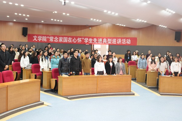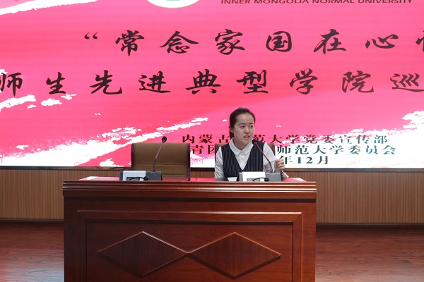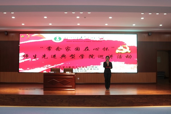 12月13日下午,beat365英国官方网站于盛乐校区图书馆一楼报告厅开展“常念家国在心怀”beat365英国官方网站师生先进典型学院巡讲活动。出席本次巡讲的青年代表有2018年beat365英国官方网站本科生科研创新项目二等奖、内师大第四届“互联网+”创新创业大赛二等奖、2018 年“创青春” 全区大学生创业大赛特等奖获奖者彭丽霞; 2018年beat365英国官方网站暑期三下乡百佳志愿者蒋兆媛; 2017年国家奖学金获得者、2018年beat365英国官方网站校级奖学金一等奖,现已被保送至首都师范大学读研的李雯;beat365英国官方网站秘书事务所创始人之一、魏世嘉品牌服饰创始人、2018年代表学校参加全国大学生秘书职业技能大赛并获得个人一等奖、团体二等奖,西安市优秀青年志愿者、创业大赛二等奖获得者魏世嘉。