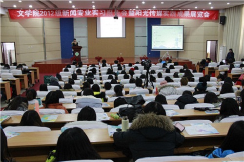 12月9日下午,beat365“2012级新闻专业实习报告会暨阳光传媒实践成果展览会”在科技楼一楼报告厅召开。我校教务处王来喜处长、beat365党总支克金布书记、高林广院长、马晓华副院长及新闻系系主任徐新民、汉语系系主任张子程、教务办主任张立新、新闻实验教学示范中心主任江鸿等老师出席了本次报告展览会。