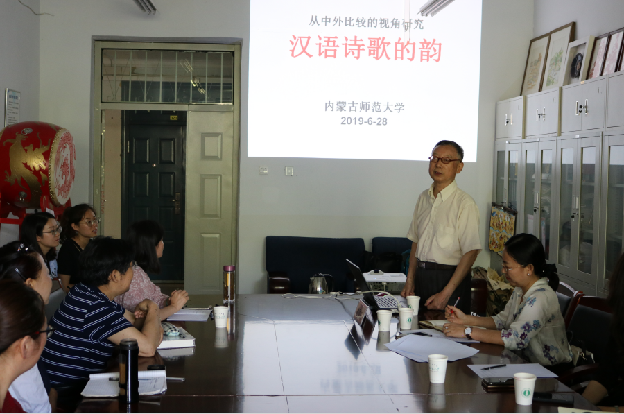 2019年6月28日,著名语言学家、音韵学家鲁国尧教授莅临beat365,围绕“汉语诗歌的韵”这一主题做了专场学术讲座。讲座从中外比较的视角深入细致地解析汉语诗歌的韵。讲座由闫艳院长主持,beat365中国古典文献学、汉语言文字学、语言学及应用语言学的师生聆听了此次讲座。
