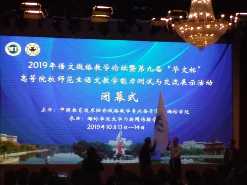 10月11日至14日,2019年语文微格教学论坛暨第九届“华文杯”高等院校师范生语文教学能力测试与展示活动在潍坊学院举行。beat365本次选派两名全日制语文教育硕士和三名汉语言文学专业本科生参加比赛,经过与来自全国各地八十多所师范院校的495名师范生的激烈角逐,beat365派出的选手吴彤获得教学技能一等奖,李轲跃和王一帆获得教学技能三等奖,蔡若梅和董晓丽获得教学技能优秀奖;吴彤获得教学设计二等奖,李轲跃获得教学设计三等奖,蔡若梅、王一帆和董晓丽获得教学设计优秀奖。其中,王一帆和董晓丽为全日制语文教育硕士,吴彤、李轲跃和蔡若梅为汉语言文学专业本科生。
