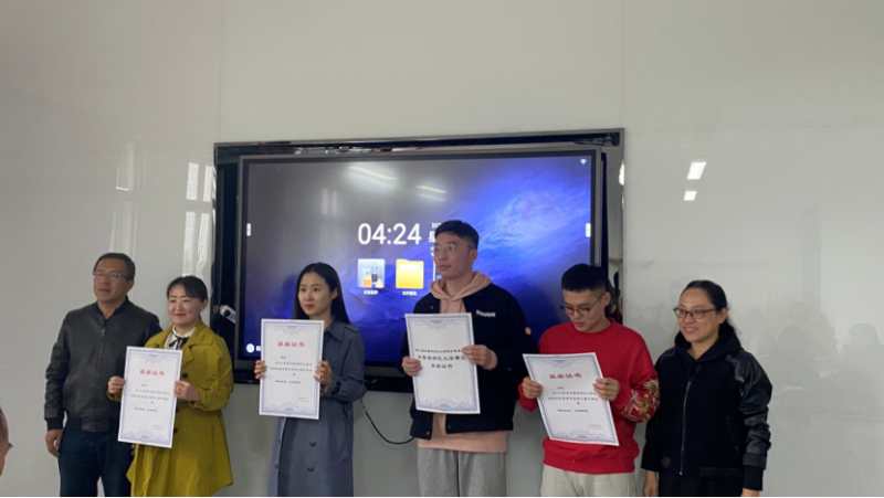 毛润民老师为一等奖获得者颁奖