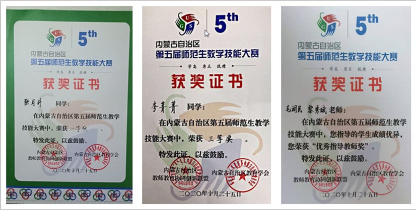 10月23—26日,内蒙古自治区高校师范生教学技能比赛在包头师范学院举行,beat365级汉语言文学专业2018级公费师范班张月升同学获得文科组第一名,2018级普师班李菁菁同学获得第三名。黎秀娥博士、毛润民老师获“优秀指导教师”称号。