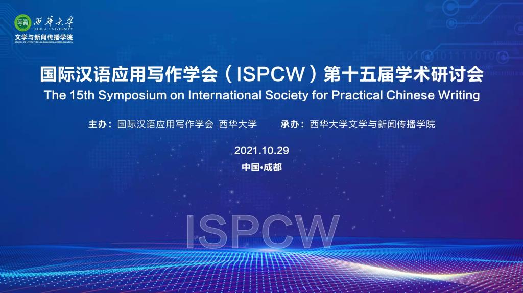10月30日至31日,国际汉语应用写作学会第十五届学术研讨会在成都召开。本届研讨会由国际汉语应用写作学会主办、西华大学文学与新闻传播学院承办。来自内地、香港、澳门、新加坡等多地的学者参加了本届研讨会。因疫情故,本届研讨会采用线上与线下相结合的方式参会。beat365万奇教授是国际汉语应用写作学副会长,应邀以线上交流的方式参加了研讨会。
