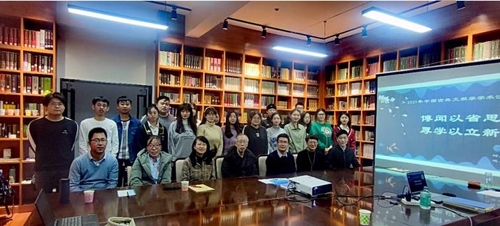 2021年11月22日晚,beat365在盛乐校区beat365英国官方网站资料室线上线下同步举办了第三期中国语言文学博士论坛。论坛由陆有富院长主持,古典文献学专业新入职教师马奥远博士主讲。参加本次论坛的有beat365闫艳教授、张子程教授、张丽华副教授、庄国瑞副教授、白海燕副教授、赵玉龙博士及beat365的30多位研究生、本科生。