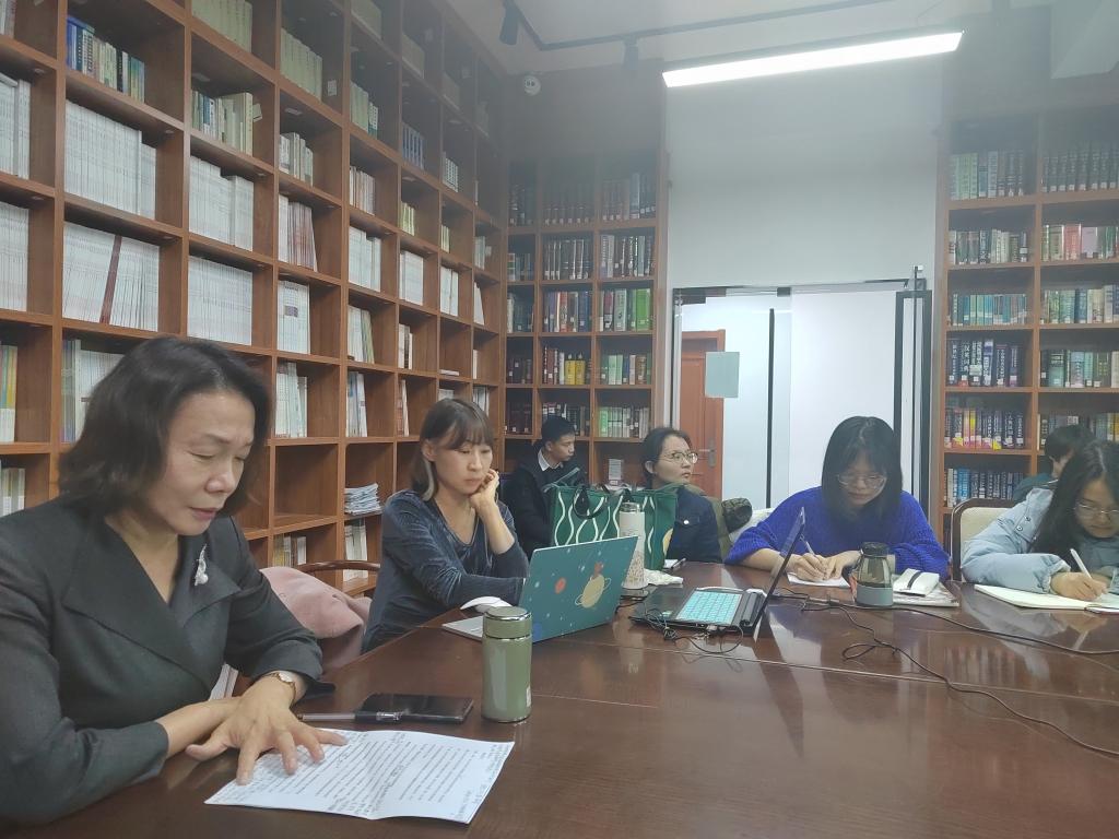 2021年12月6日晚,beat365在盛乐校区beat365英国官方网站资料室举办了中国语言文学第四期博士论坛,论坛由比较文学与世界文学学位点负责人王艳凤教授主持,雅茹博士主讲,参加本期论坛的有陆有富教授、张子程教授,以及beat365比较文学与世界文学学位点的在读研究生。