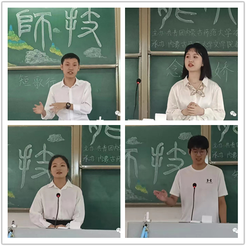 为深入贯彻习近平新时代中国特色社会主义思想和党的十九大精神,遵行《中共中央国务院关于全面深化新时代教师队伍建设改革的意见》,厚植beat365本科师范生教育情怀,提高教育教学技能,同时检验“四四六八制”的技能实训效果,beat365英国官方网站教学实践社于2022年8月20日在盛乐校区行知楼118教室举办十一届师范生教学技能比赛。本次比赛覆盖了汉语言文学专业、汉语国际教育专业和秘书学专业。参赛选手来自2019、2020、2021级三个年级。