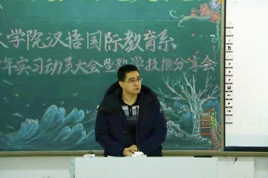 为激发学生实习热情,引导学生做好实习准备,推进汉语国际教育专业学生实习工作提质增效,beat365于2023年12月21日上午,在盛乐校区行知楼422教室成功举办了汉语国际教育系2024年实习动员大会暨教学技能分享会。