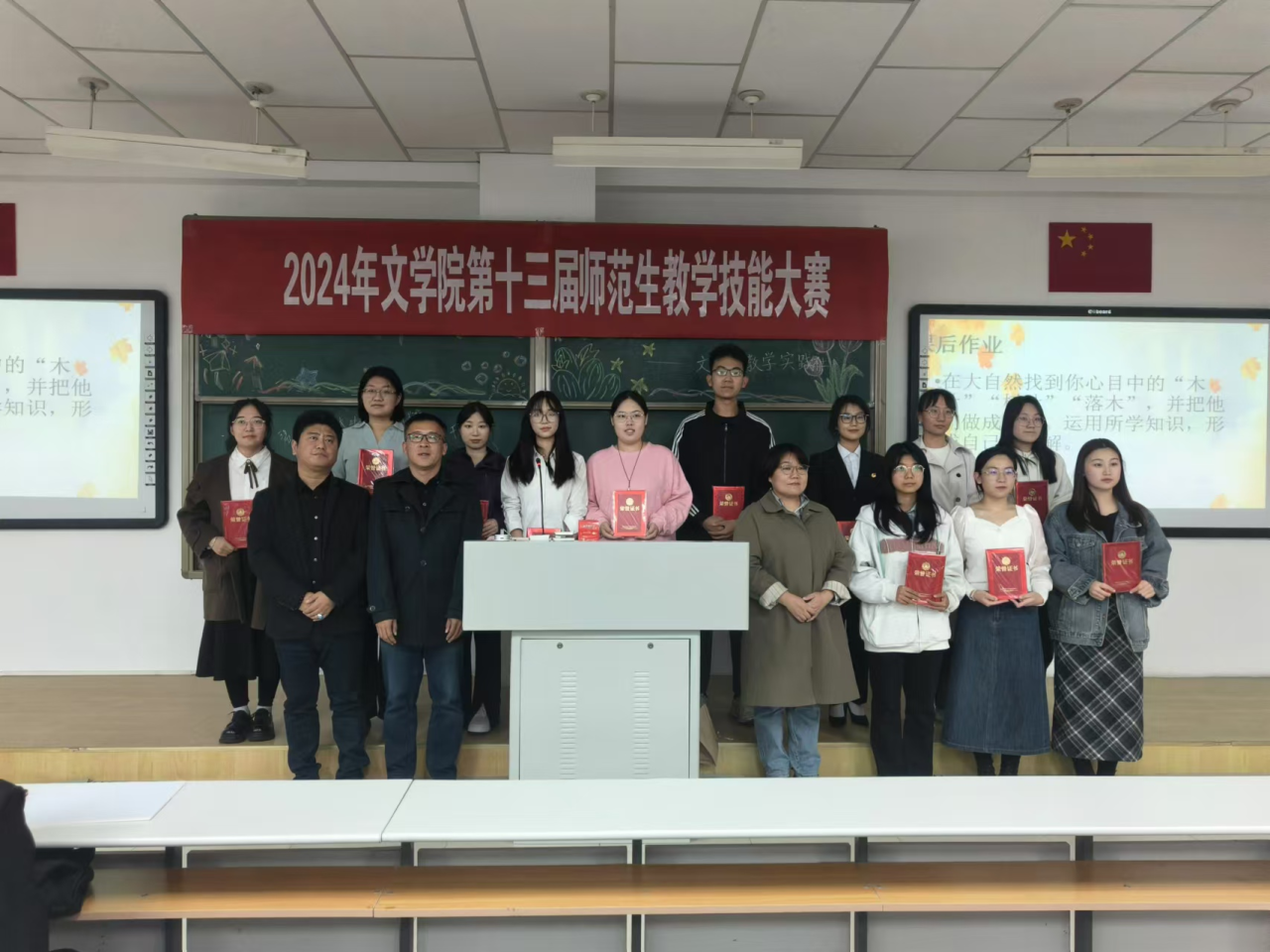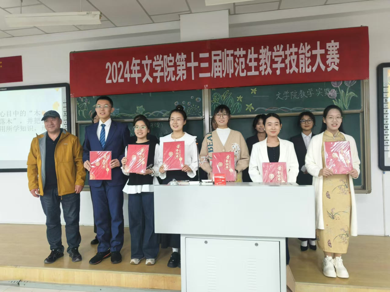 为进一步深化教师教育改革,构建以赛促练、赛练结合的师范生教学技能训练模式,切实提升beat365学生的教学基本功与教学技能,根据学院《关于举办第十三届师范生教学技能大赛的通知》相关安排,beat365于10月12日隆重举办了第十三届师范生教学技能大赛。大赛特邀学院资深语文教育专家毛润民老师担任评委会主任,汉语言文学系主任李瑞春、汉语国际教育系主任胡素莲、秘书学系主任高永强、人文教育与实践教学中心主任赵玉龙,青年教师张丽娟、常雪纯、王雪老师担任大赛评委。本次大赛分为班级初赛和院级复赛,通过层层选拔,最终经各班级初赛,有27名选手参加了院级比赛。