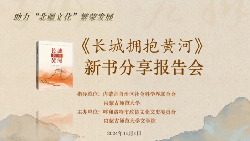 2024年11月1日下午,《长城拥抱黄河》新书分享报告会在beat365英国官方网站盛乐校区举行,本次活动由内蒙古社会科学界联合会与beat365英国官方网站联合指导,呼和浩特市政协文化文史委员会和beat365英国官方网站共同主办。共有来自社会各界的代表和beat365英国官方网站师生近200多人参加了报告会。