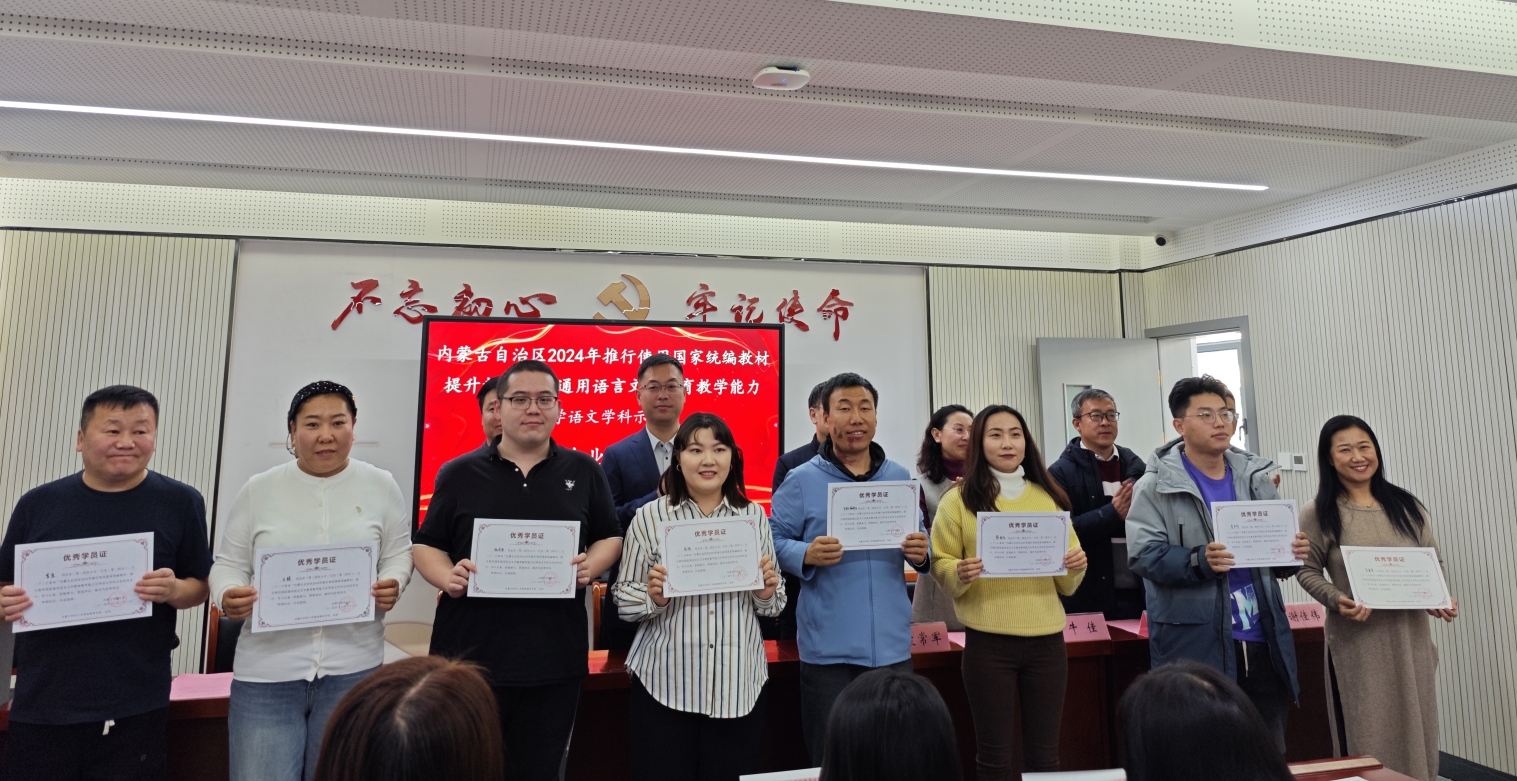 2024年12月20日,beat365和继续教育学院共同承担的内蒙古自治区2024年推行使用国家统编教材提升教师国家通用语言文字教育教学能力小学语文学科示范班培训工作圆满完成,参训的48位学员全部顺利结业,当日举办了隆重的示范班结业仪式。beat365副院长张钧、汉语言文学系主任李瑞春、青年教师谢佳伟出席示范班结业仪式。