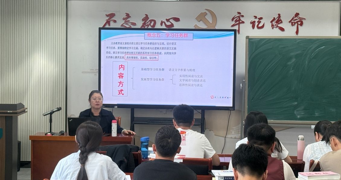 本次培训选派beat365与国家语言文字推广基地(beat365英国官方网站)国家级普通话水平测试员徐雪梅、自治区级普通话水平测试员李丽、麻彩霞、宗慧坚、高永强等教师开展“现代汉语基础理论专题”“普通话语言表达训练专题”,用以匹配中学语文教材中的口语交际、词语积累与词语解释等内容。同时遴选第七届全国高校青年教师教学竞赛二等奖获得者马奥远副教授等多位中青年教师骨干承担经典选篇精读与理论研习等课程的讲授,用以匹配中学语文教材中的古诗词、文言文作品、中学现代课文、写作等专题。与此同时,为强化中学语文教学基础理论与经典案例分析、中学语文教科书概论、中学语文教学设计指导、中学语文课堂教学实践指导等能力,特邀王治国、璋琳、顾恩多、陈鑫磊、郭新宇、张文坤、车潇玉、王龙飞、赵玉堂、李燕、张利芳、崔微微等多位自治区级、市级语文教学名师、学科带头人为学员进行专题讲座与授课。
