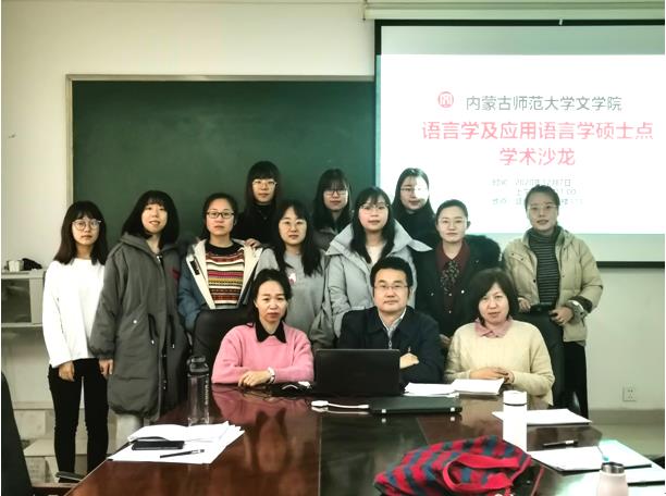 2020年12月7日上午八点半,beat365英国官方网站语言学及应用语言学硕士学位点的学术沙龙活动在盛乐校区学院楼A315教室举办。语言学及应用语言学硕士学位点导师麻彩霞老师、李剑冲老师、周凤玲老师及学位点的10位研究生参加了本次活动。