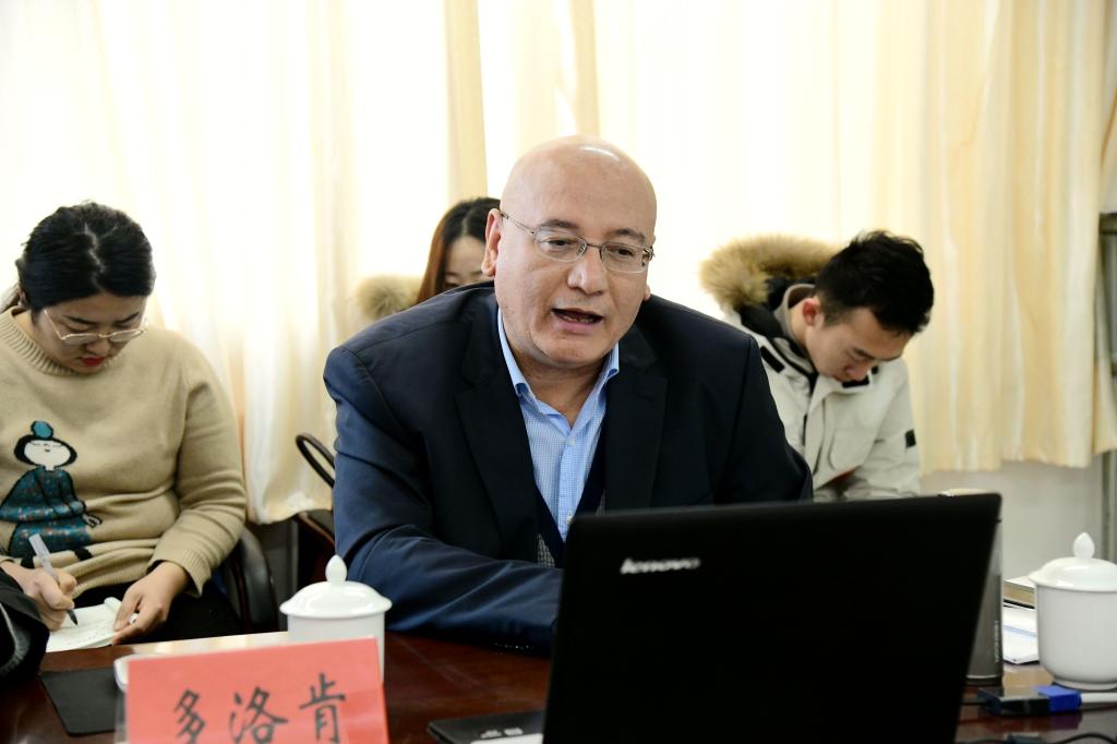 2020年12月14日下午,西北民族大学中国语言文学系教授、博士生导师多洛肯教授莅临beat365,为学院广大师生做了一场题为“民汉文学交融视阈下的古代民族文学研究”的学术讲座。此次讲座由中国古代文学学位点承办,beat365英国官方网站博士生导师高林广教授主持会议。来自beat365英国官方网站中国古代文学、中国古典文献学和文艺学专业的相关教师和博士、硕士研究生及部分本科生共30余人聆听了讲座。