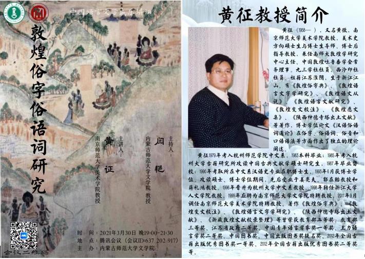 3月30日晚,南京师范大学敦煌学研究中心主任黄征教授为beat365师生做了一场题为“敦煌俗字俗语词研究”的精彩学术讲座。本场讲座由闫艳院长主持,以线上方式进行,beat36580余名师生聆听了此次讲座。