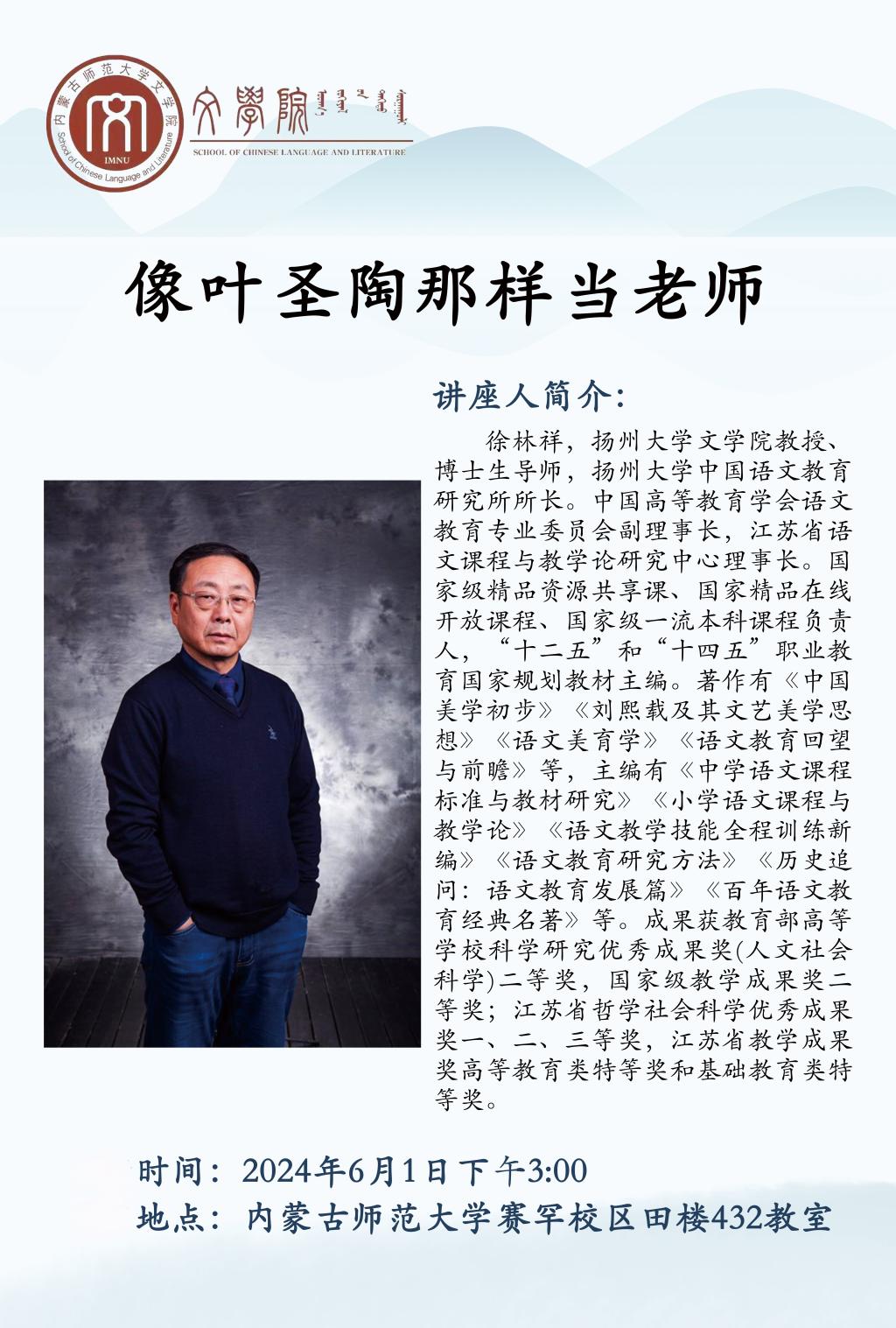 2024年6月1日下午,扬州大学beat365英国官方网站教授、博士生导师徐林祥教授在田家炳教育书院432教室为beat365师生作了题为“像叶圣陶那样当老师”的学术讲座。讲座由副院长张钧教授主持。