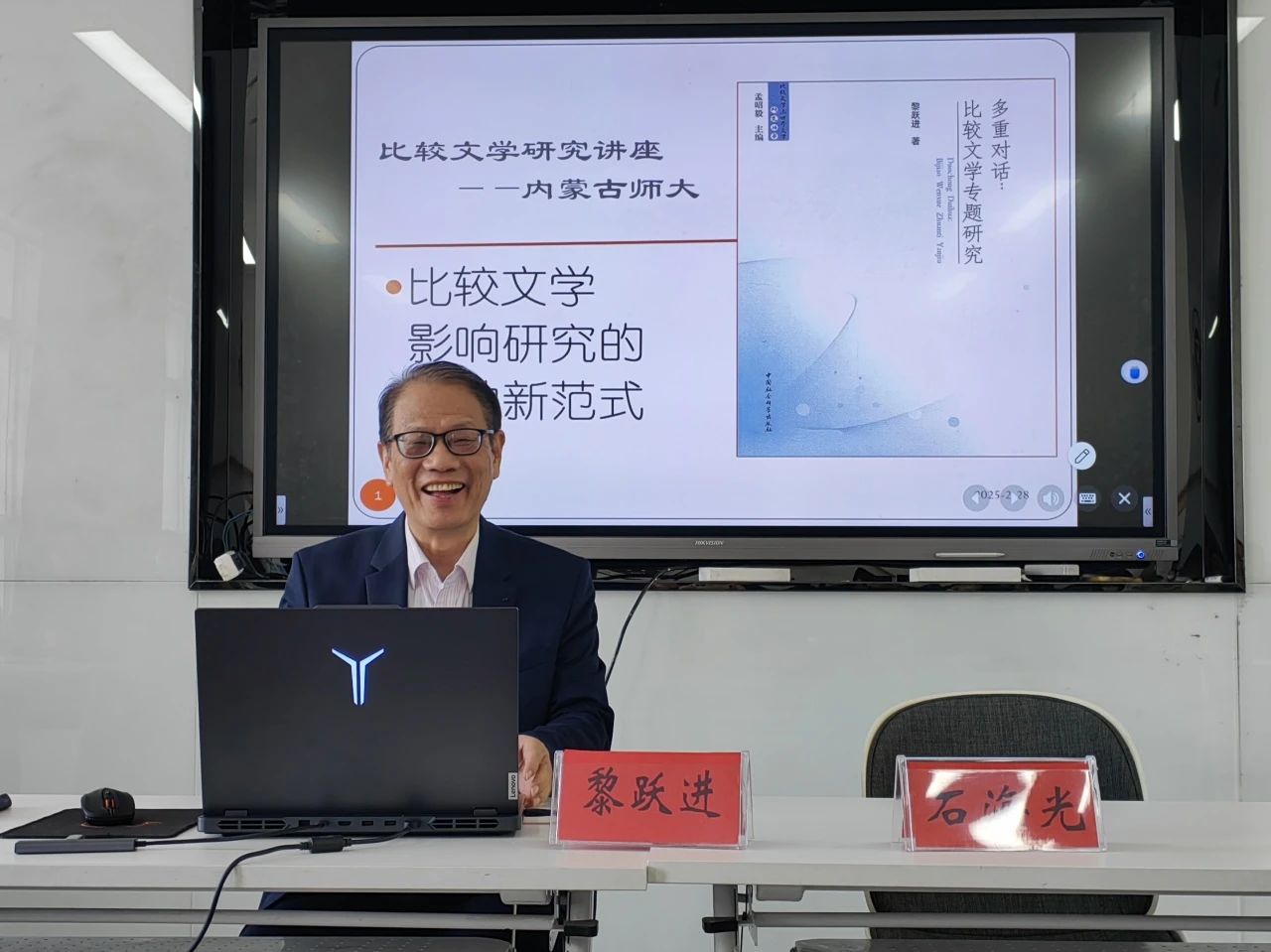 黎跃进教授在讲座中首先强调了学术研究的根本目的是创新。基于此,黎教授在比较文学影响研究领域提出了“同根并蒂”新范式,突破了传统“两点一线”的局限。同时,黎教授还从泰戈尔在中国的译介传播中提出了“异域作家的本土建构”这一命题,展示了如何将这一复杂的文学现象整合为一个系统的研究框架,从而拓展了比较文学的研究空间。